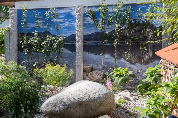 Allerdings werden statt der Zaunlatten 10 Zentimeter breite Holzelemente an den Querbalken befestigt. Diese sind gefüllt mit schallisolierendem Material. So werden zu laute Geräusche ausgesperrt – das Resultat ist erholsame Ruhe in Ihrem Gartenidyll.